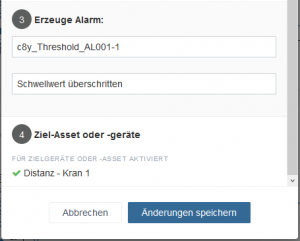 Klicken Sie in dem Widget „Cloud Operationen“, welches standardmäßig in jedem Sensor Dashboard vorhanden ist, rechts neben „Bei Schwellwert Alarm erzeugen“.