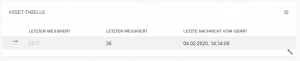 Das Widget “Asset-Tabelle” zeigt eine Tabelle mit Details zu den Kindgeräten an. Dies ist ein Widget, dass es ermöglicht, ausgewählte Attribute von Objekten in einer Tabelle zu arrangieren. Außerdem können sogenannte Kommandos in Form von textuellen Anweisungen zu Schaltinformationen hinzugefügt werden.