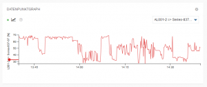 Das Widget “Datenpunktgraph” zeigt einen Datenpunkt (Messwert) in einem Graphen. Die Visualisierung ist identisch mit der im Default Dashboard des Sensors. Am einfachsten erstellen Sie ein “Datenpunktgraph”-Widget, indem Sie dies aus dem Dropdown-Menü auswählen und einen oder mehrere Datenpunkte Ihres Sensors hinzufügen und aktivieren.