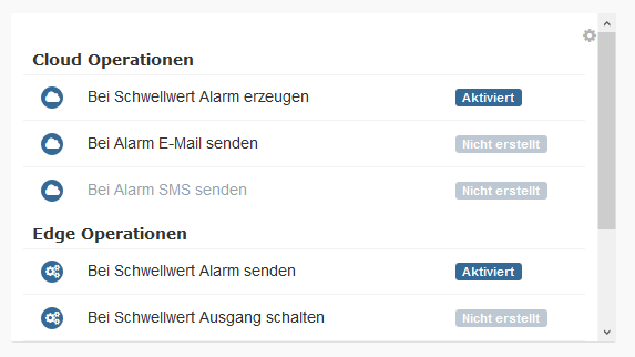 Info: Dieses Widget findet sich standardmäßig in jedem automatisch erstellten Sensor-Dashboard wieder. Die Jeweilige Zeile der Anordnung spiegelt den Datenpunkt wieder, für welchen die Regeln gelten.