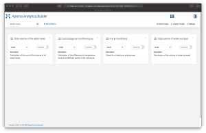- You monitor different water tanks. With the Apama Analytics Builder you can easily find out how much water is added up in all tanks at any time. (Expression block)