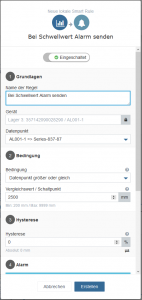 - First define a name for the rule and select the data point in the drop-down menu that shall be the basis for your rule