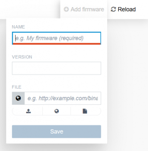 - On the next page you will find all firmware versions already uploaded. To add another one, click “Add firmware” at the top right